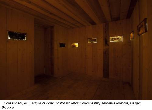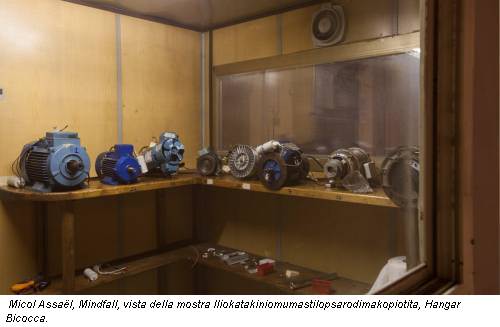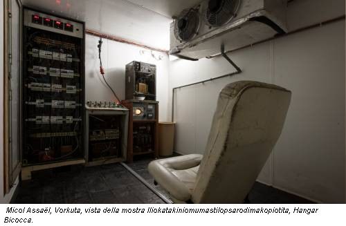 Il percorso espositivo si snoda intorno a cinque ambienti: quattro installazioni fondamentali del percorso dell’artista, realizzate tra il 2003 e il 2009, prima d’ora mai esposte insieme e Sub, l’opera site-specific pensata per l’Hangar, realizzata con la collaborazione del laboratorio chimico di Pirelli. Gli ambienti di Assaël si integrano perfettamente con lo spazio industriale dell’Hangar, simulano una sala macchine di una nave, dove i container ricolmi di assemblaggi di strumentazioni vintage che producono suoni di diversa natura e assordanti, fastidiose vibrazioni, effetti termici, un vento talmente forte da bloccare il respiro. Spiazza il maxi “alveare” ligneo che riproduce il ronzio di uno sciame di api assieme al profumo del miele. È l’unico ambiente ad evocare un luogo naturale che profetizza catastrofi ecologiche. Congela i pensieri la cella frigorifera dal gelo siberiano e, nella nuova installazione, inconsapevolmente il visitatore provoca interferenze di energia che alterano la percezione dello spazio.