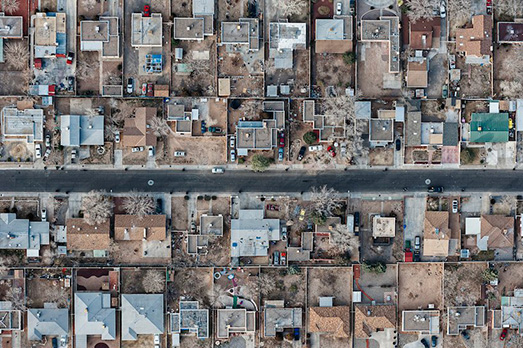 “Strata”, è il titolo della mostra che, fino al 24 giugno, alla galleria Front Room di New York, presenta al pubblico gli scatti di Zoe Wetherall e Ashok Sinha. Affascinati dallo sviluppo della fotografia aerea, i due artisti utilizzano diversi mezzi per realizzare le loro suggestive immagini: in “New York to Los Angeles” Sinha cattura la bellezza del paesaggio che si intravede dal finestrino dell’aereo lungo la tratta tra le due città. Continuando a volare sempre partendo da questi due punti, il fotografo studia di continuo le condizioni metereologiche e i punti più suggestivi da immortalare. Le foto di Zoe Wetherall invece, sono scattate a poche centinaia di metri sopra le nostre teste: escludendo l’orizzonte e il cielo, la fotografa australiana registra la geometria delle forme naturali e di quelle create dall’uomo, rivelando la bellezza nascosta nell’architettura e nel paesaggio.