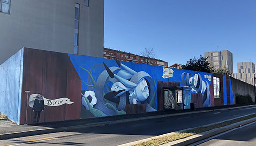Via Gallarate, l’arteria che assorbe il 40% del traffico urbano di passaggio a Milano, ha un nuovo volto. Merito di OZMO, ZED1 e RANCY, i tre street artist che, dall’8 al 15 dicembre 2018, grazie al progetto SMART Street Colors curato e promosso dall’associazione culturale El Redefoss, hanno lavorato sulla grigia murata che costeggia la strada. In forte dialogo con il contesto, i tre murales parlano della strada e del movimento nelle loro declinazioni di percorso, esplorazione, progresso, connessione, dinamicità e scelta, offrendosi come esperienza visiva ed estetica che apre all’immaginazione e alla riflessione. ZED1 ha realizzato ‘Il Bivio’, murale che si integra con la pensilina degli autobus, in cui un personaggio che ha tra le mani il joypad della playstation è avvolto tra le strade che conducono alla sua amata, offrendo ai pendolari la possibilità di scegliere tra due percorsi, evocati da frecce che puntano verso direzioni opposte. Ci sono anche la Venere de’ Medici e Hermes con Dioniso fanciullo di Prassitele, portatrici, nel lavoro di Ozmo, di un messaggio di protezione e di buon auspicio destinato agli automobilisti di passaggio.