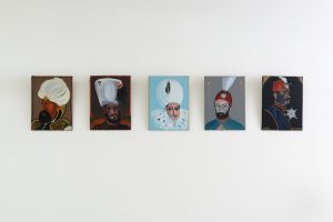 Un Cattelan diverso dal suo inconfondibile stile, ma sempre irriverente e provocatore è presente con le opere sulla parete a lui dedicata. Esempio rappresentativo è Cuore, pezzo di ricambio, 1988, realizzato con un pezzo di cartone Alfa Romeo a forma di cuore, tagliato, bucato e tenuto insieme da un pezzo di nastro adesivo. L’uso di svariate tecniche, le frasi, le riflessioni riportano lo stretto legame con la società e con tutto ciò che in quegli anni ne richiamava l’attenzione. Del torinese Aldo Mondino presente la serie dei cinque sultani, Murad I (1359 – 1389), Abdul Mejid (1839 – 1861), Osman II (1618-1622), Mustafa I (1617 – 1618) e Murad V (1876), ciascuno ricordato per una particolare caratteristica con cui ha vissuto, come ad esempio l’avarizia e la mancanza di senno. L’opera Jugend Stilo, 1992, è un meravigliosa scultura/lampadario realizzata con penne bic, ancorate alla struttura del lampadario, che conferiscono all’ambiente una luce soffusa grazie alla loro trasparenza. Jugend Stilo furono presentati per la prima volta alla Biennale di Venezia, curata da Achille Bonito Oliva, nel 1993 e testimoniano la riflessione dell’artista sul contrasto e la coesistenza nel reale tra oggetti industriali quali le penne e oggetti tradizionali quali il lampadario.