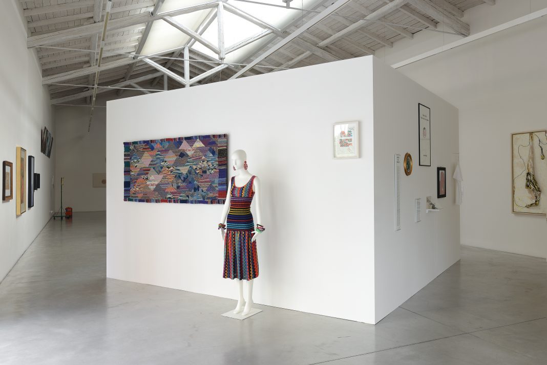 Ad accogliere lo spettatore le creazioni multicolore di Missoni, un tappeto e un abito dalle linee e tinte inconfondibili, realizzate con preziose tessiture. Spostando lo sguardo, Paladino con tre opere iconiche e rappresentative della sua poetica, seppur in alcuni tratti innovativi. Maggior portavoce è la tela Selvatico Selvaggio del 1980, in cui l’artista rappresenta, attraverso i più svariati materiali, sulla scia dell’informale, una sagoma iconica dalle linee umane e animali.