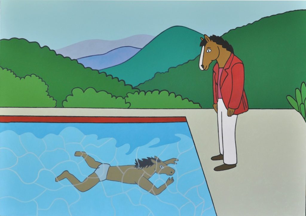 Così come per i libri e per il cinema d’autore, capita talvolta che anche una serie possa diventare iconica e colpirci così nettamente da lasciare un segno indelebile. È accaduto per Bojack Horseman e dopo l’esperienza profonda di conoscerne il racconto, vedere una testa di cavallo su un uomo non potrà ricordarci null’altro. La narrazione è così realista, profondamente psicologica, illuminante dei processi che regolano il mondo di Hollywood e non solo, che usare degli attori sarebbe parso posticcio, limitante. Per questo, la scelta del cartone animato è azzeccatissima. Ci consegna l’opportunità di identificare dei tipi umani grazie a un allegorismo puro, dove lo zoomorfismo diviene ironica caratterizzazione e, allo stesso tempo, il simbolo di uno status in cui il personaggio stesso rimane imprigionato, senza possibilità di redimersi o di cambiare, tirato sul fondo (della piscina…del bicchiere…) dal proprio istinto di “animale”.