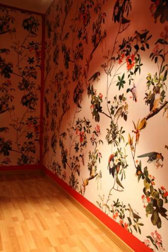 La mostra è molto bella e l’allestimento assolutamente raffinato, la carta da parati è perfetta in corridoio e la scultura/lampada funziona benissimo nello spazio che le è stato riservato.