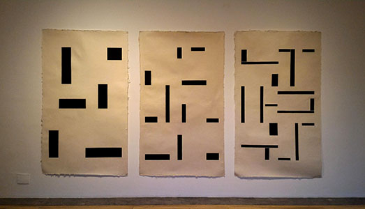 Protagoniste indiscusse, sono le sculture in legno combusto che dominano la scena; realizzate a partire dalla metà degli anni ’80, attraverso la staticità e l’equilibrio plastico che le contraddistingue, mettono in moto un chiaro ed evidente dialogo con lo spazio che le circonda.