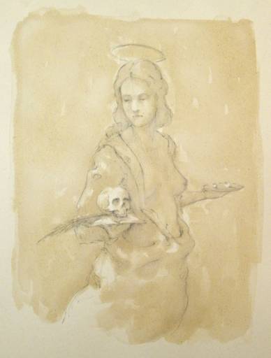 I pastelli della serie Progetto Magick, dominati da cromatismi uniformi, sono di notevole intelligenza visiva. Supporti chiari sostengono sacro e profano: dalle tre sante siciliane, unite in un’unica severa effige oracolare, ai riferimenti al mondo dei tarocchi. E ancora figure tridimensionali incastonate in uno spazio piatto, neutro, restituito dal tratto nero su fondo nero: dall’oscurità emergono, via via che l’occhio si abitua, apparizioni rivelatrici e profetiche.