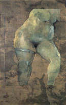 La prima, romana, è un’artista emergente della nuova figurazione, che insieme alla Tulli e ad altri giovani rappresenta oggi un significativo orientamento della pittura italiana. Il secondo, palermitano, è invece un artista che appartiene alla generazione immediatamente precedente, e che da sempre ha portato avanti un percorso artistico fedele alla pittura. Gaetano Cipolla negli ultimi anni ha infatti legato la sua ricerca al tema dell’uomo e della fatica del vivere che si materializza, nella sue opere, in una rappresentazione di corpi gonfi e teneramente sofferenti. Stefania Fabrizi espone quattro grandi tecniche miste su carta in cui l’uomo viene collocato accanto agli elementi dell’acqua e del fuoco. Gaetano Cipolla espone invece quattro pitture su legno in forma di polittico, nei quali l’uomo è collocato in ambienti chiusi, nei quali domina il nero.
