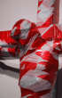 T.W.-(I.N.R.I.), infine, è un antico crocifisso toscano completamente avvolto con il nastro bianco e rosso usato per i lavori in corso: il nastro ci dice di fare attenzione a preservare le nostre radici e i nostri valori cristiani.