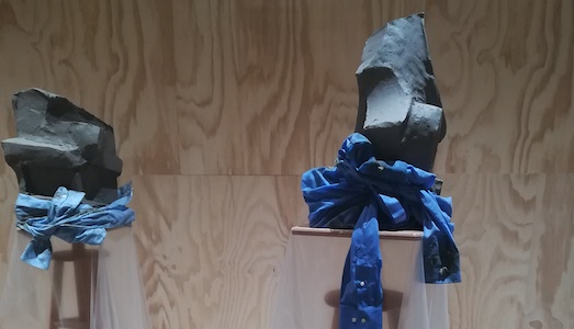 Anche in questo caso i temi sono quelli più caldi e drammatici dei nostri tempi, sui quali si muove la nostra storia contemporanea: poesia imprigionata che risuona nell’aria, nell’installazione di Shilpa Gupta; la realtà che non collima con il desiderio, o il tradimento delle aspettative del giovane cinese (1984) Nabuqi (in home page); la sessualità esplorata da Martine Gutierrez, nell’abbraccio di manichini, tra estasi e turbamento, tra ironia e impassibilità; la memoria della dittatura militare di Lee Bul, con una sorta di antenna televisiva, una torre modernista, costruita con i detriti del primo checkpoint che divideva l’area della Corea del Nord e del Sud; le maschere alpine tra macabro, grottesco e surreale di Cameron Jamie; l’impossibilità di raggiungere completezza e perfezione nella “natura morta” (sopra) con creta di Maria Loboda.
