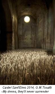 C’è una scala a chiocciola che si arrampica verso l’alto, per consentire un ideale accesso a un ambiente sopraelevato, una torretta che non appartiene a un solo passato ma a tutti i passati di Castel Sant’Elmo, che nelle sue cisterne ha trovato anche un campo di grano, visione di libertà oltre le mura che hanno visto anche condanne ed esecuzioni. Stiamo parlando di Le Jardin, il lavoro collettivo di Giulia Beretta, Francesca Borrelli,Francesco Cianciulli, Romain Conduzorgues, Baptiste Furic, Silvia Lacatena, Jule Messau, Carolina Rossi, e di My drams, they’ll never surrender, di Gian Maria Tosatti, i due ex aequo del concorso “Un’opera per il Castello” di quest’anno.
