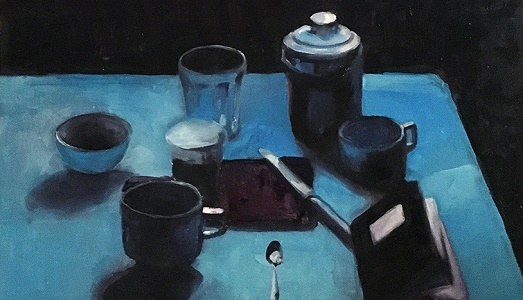 Sopra: Guido Buganza, Blue Breakfast. Galleria Gli Eroici Furori
