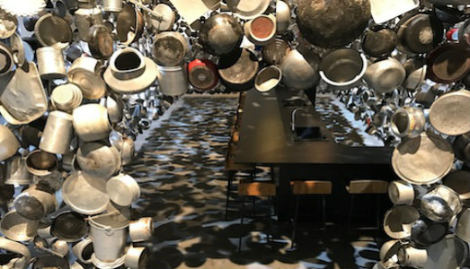 L’ex enfant terrible del subcontinente indiano, il Damien Hirst di New Delhi, ha messo la testa a posto e, adesso, offre la cena a tutti. Per Art Basel Unlimited 2017,la piattaforma sperimentale della fiera svizzera e curata da Gianni Jetzer, Subodh Gupta presenterà un’opera relazionale, un po’ Tiravanija e un po’ Masterchef, un dispositivo di condivisione di un momento densamente simbolico e caratterizzante di ogni cultura. Cheela, Bhel Puri, Khichadi, zuppa di lenticchie e altri piatti tipici della tradizione indiana, saranno cucinati dall’artista che, attualmente, è rappresentato da Hauser&Wirth e Galleria Continua ma fu scoperto da Pierre Huber. Il pubblico siederà a un desco suggestivamente in tema, una lunga tavolata in legno scuro attorniata da un fitto drappeggio di alluminio, una sorta di rifugio ricavato da decine di pentole e tegami sospesi a un filo. E non è la prima volta che Gupta opta per questo genere di objet trouvé. Gli utensili da cucina tornano spesso nelle sue opere e furono già usati per Very Hungry God, il grande teschio esposto a Palazzo Grassi in occasione della Biennale di Venezia del 2007. Per assaggiare le pietanze che Gupta cucinerà fino al 19 giugno, è necessaria la prenotazione gratuita a questo sito.