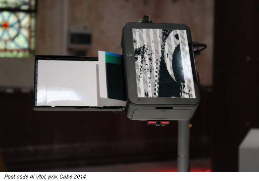 Organizzato dal Centre de la Création Numérique Le Cube, luogo di riferimento nella creazione digitale, attivo dal 2001, il Prix Cube attaverso una giuria composta dall’architetto Odile Decq, l’artista e cofondatrice del collettivo Troika Conny Freyer, dal curatore e storico dell’arte Patrick Gyger, dal redattore capo della rivista d’arte Œil Fabien Simode e l’artista e commissario Zhang Xiaotao, ha ricompensato ieri sera l’opera Post Code del russo Vtol, classe 1986. Si tratta di un meccanismo interattivo che trasforma i codici a barre di qualsiasi prodotto in un’immagine astratta, sempre diversa nei colori e nelle forme, questa è stampata da una macchina con un formato cartolina. Deviando il codice a barra, simbolo del consumismo di massa, Vtol, propone una riflessione su come la nostra società riorganizzi i nostri gesti e usi quotidiani. Il premio consiste in una donazione di diecimila euro e un mostra dell’opera vincitrice in Cina, in linea con l’anniversario delle relazioni tra Francia e Cina.