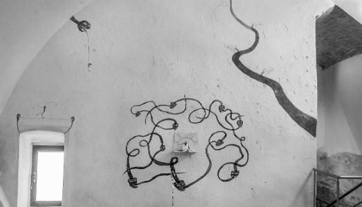 In alto: Làzaro Saavedra, Detector de Ideologias, 2014,Torrione Passari, Molfetta. Ph Annamaria La Mastra