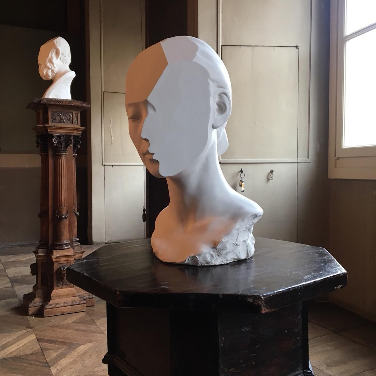 In alto: T-yong Chung, Joo Kim, 2017, gesso, 25x25x40h cm; Courtesy l’artista