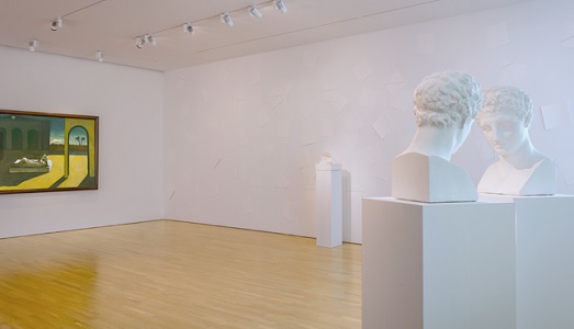 Fino al 24 giugno CIMA ospita un raffinatissimo vis à vis tra Giorgio de Chirico e Giulio Paolini. Quest’ultimo si è sempre dichiarato affascinato dal “Pictor optimus”, ma immaginare come questa fascinazione potesse esprimersi è un esercizio curatoriale di non poco conto. E la mostra, attraverso il confronto tra opere pur diversissime – bianche e geometriche quelle di Paolini ,colorate e figurative quelle di de Chirico, autoritratti concettuali e scene che si rifanno alla tradizione classica – rivela lo sguardo attento che Paolini ha rivolto sull’artista della Metafisica.
