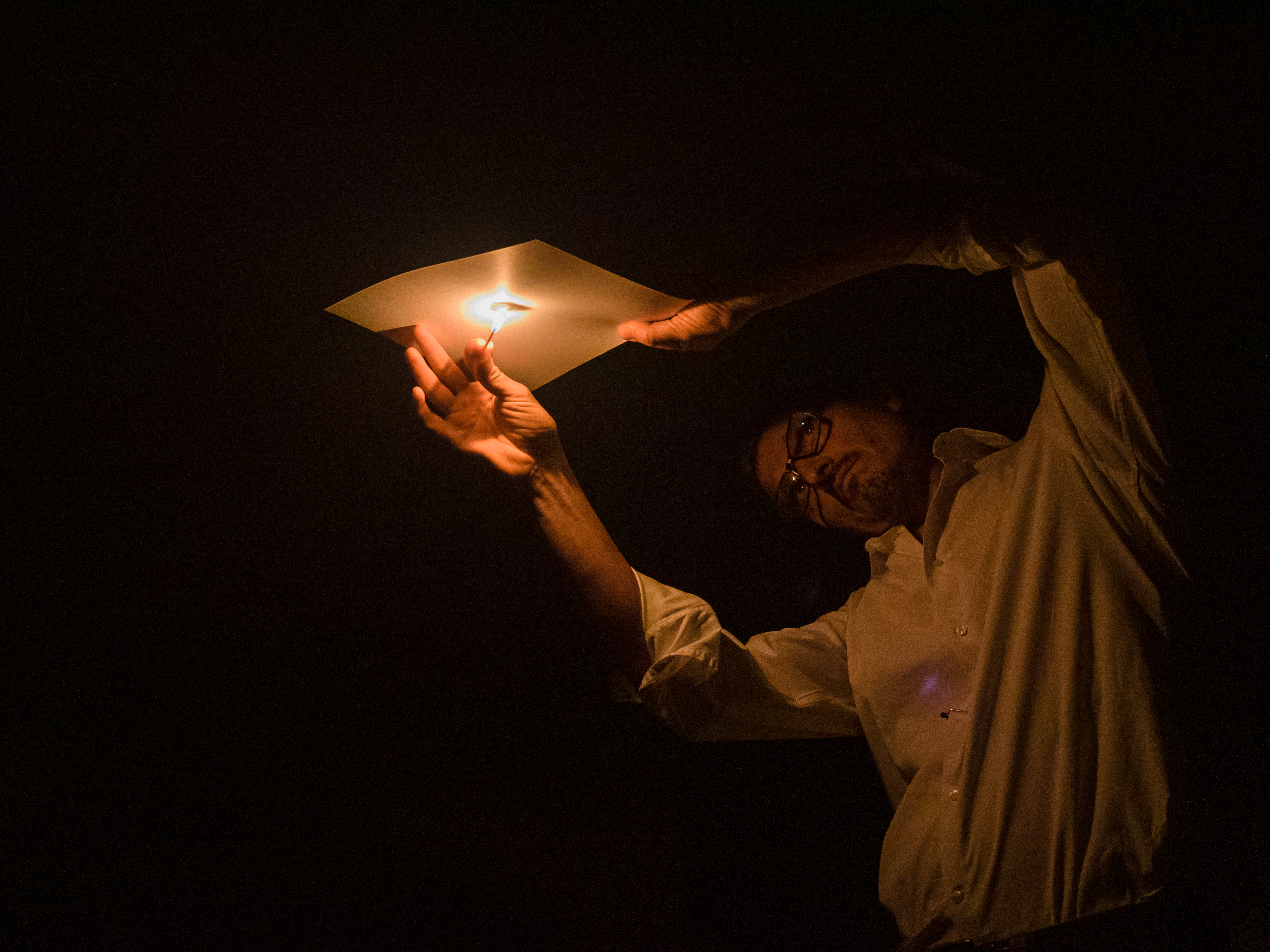 La performance di Pietroiusti infonde significato a un gesto tanto semplice quanto autentico, fino a denotarlo di rispondenze catartiche e intime. Predisposta nel buio della cantina interrotto, solo a intervalli, dai bagliori del fuoco mediante cui l’artista, lentamente, bruciava fogli di carta generando, così, piccoli lavori impreziositi dalla caducità del suo gesto di cui rimane traccia nella combustione, era inoltre permesso, ai fruitori, di portarne alcuni via con sé con l’invito a completare l’operazione artistica bruciando definitivamente – in un secondo memento – l’opera.