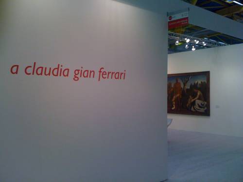 Una scritta, quella che leggete qui sopra, e sullo sfondo un grande dipinto di Mario Sironi. A Claudia Gian Ferrari. Questo si può leggere passando per il corridoio centrale del padiglione 20, ad Arte Fiera.
