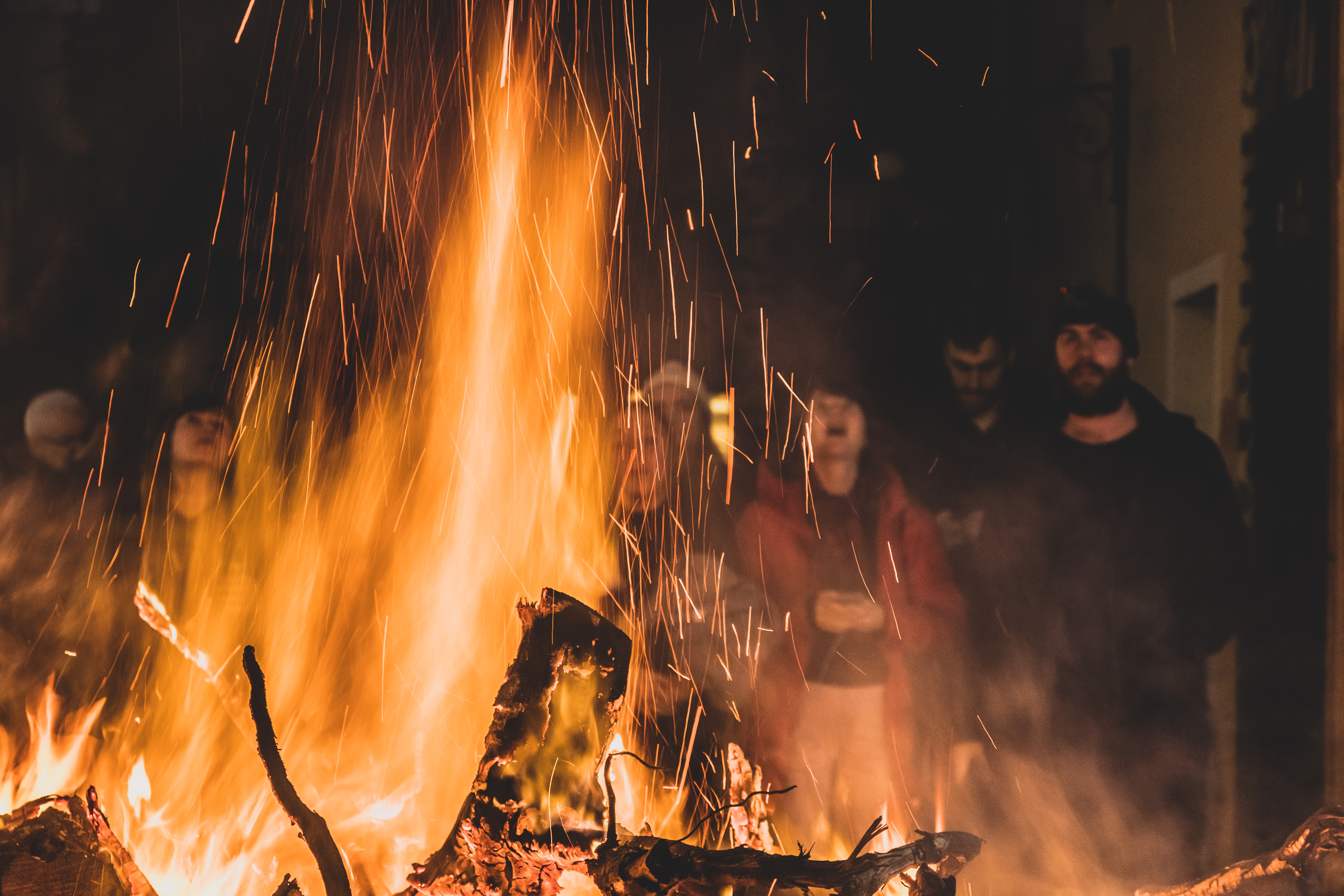 In alto: Gli artisti assistono ai fuochi di Sant’Antonio a Mamoiada. Ph. Barbara Pau