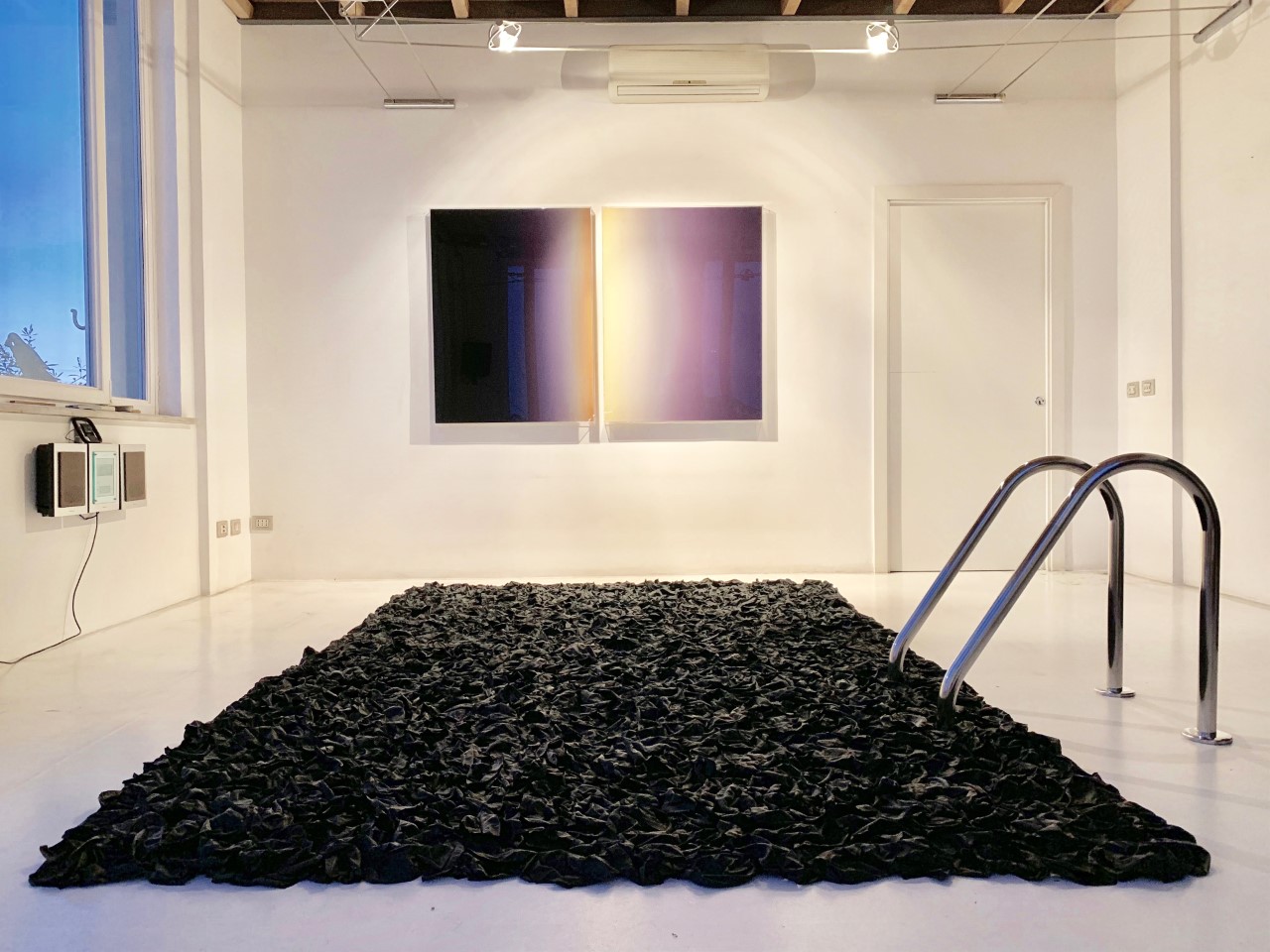 Bolle polimorfe, finte piscine di scarti neri, tubature idriche, onde (persino elettromagnetiche), paguri e calamari stilizzati, intrecciate sculture impostate sul principio del nastro di Moebius, si prospettano in tutta la loro ondulatoria fluidità al pubblico di “Divenire”, collettiva appena inaugurata a Roma, presso lo spazio T24, a cura di Giuditta Elettra Lavinia Nidiaci, che pone in stimolante relazione i lavori, rispettivamente, di Marco Angelini, EPVS, Yiannis Galanopoulos, Cristallo Odescalchi, Andrea Pinchi e Federica Zianni.