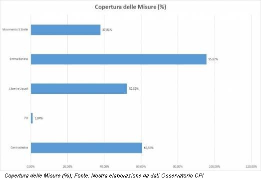 Il che tradotto, in termini un po’ più grossolani, significa che, fatta eccezione del programma di Emma Bonino (con copertura quasi totale delle misure proposte), tutti gli altri programmi prevedono che l’Italia debba ancora indebitarsi.