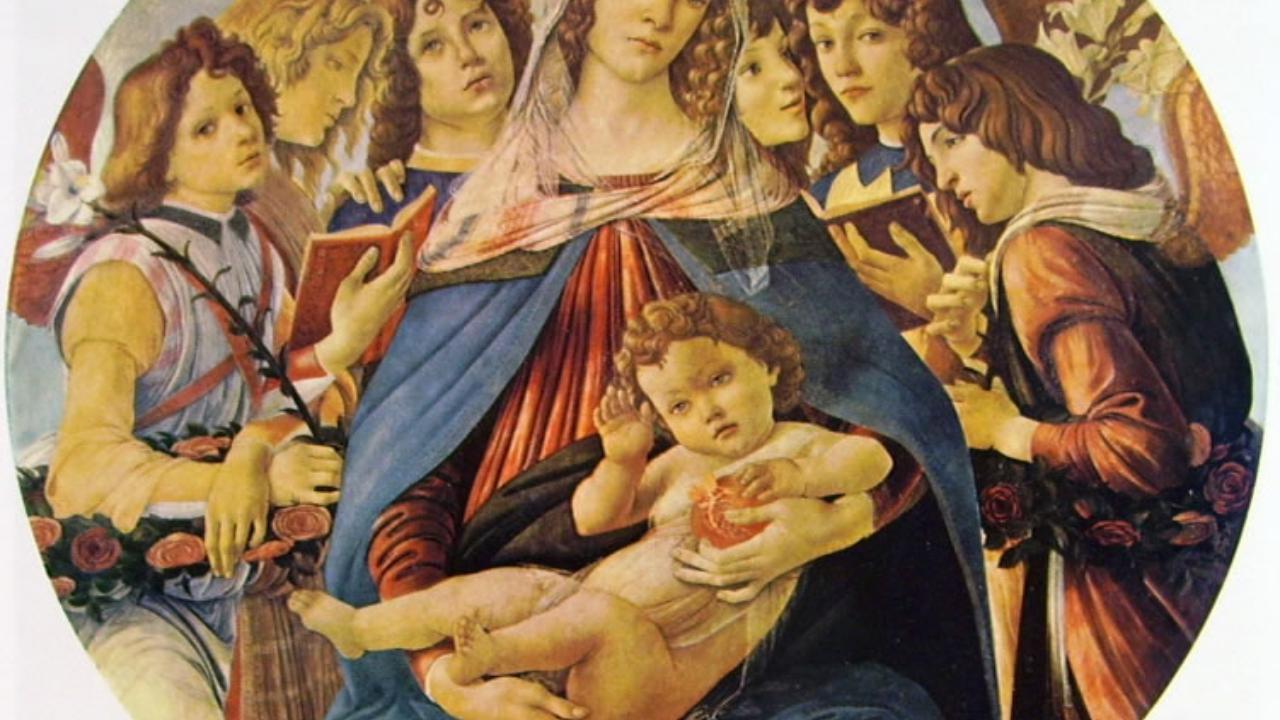 L‘opera raffigura la Vergine circondata da angeli e con in braccio il Bambino, che tiene in mano una melagrana, simbolo della futura Passione. Di dimensioni più piccole rispetto all’originale, conservato alla Galleria degli Uffizi di Firenze, la copia è sempre stata considerata un falso per via di una più scarsa rifinitura e di alcuni differenti dettagli iconografici. Le somiglianze delle linee, però, erano comunque troppo accentuate per non smuovere la curiosità degli studiosi: «Botticelli è molto riconoscibile, e se conosci anche solo un po’ di storia dell’arte, allora guardando questo dipinto dirai che è un Botticelli», ha detto al Guardian Rachel Turnbull, capo restauratrice e conservatrice presso l’Heritage, aggiungendo: «Stilisticamente era troppo simile per essere un’imitazione: era del periodo giusto, era tecnicamente corretta ed era dipinta su pioppo, un materiale comunemente usato all’epoca».
