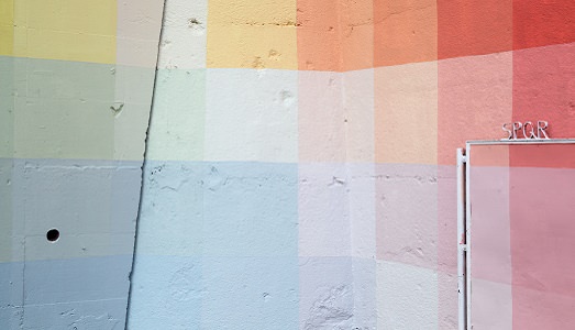 Il nuovo locale sorge proprio nel mezzo di una zona in pieno sviluppo e riqualificazione, in questo processo la street art ha avuto un ruolo fondamentale. Tutta l’area ospita numerosi interventi di arte urbana, dai colorati murales di Blu sull’ex caserma occupata fino alle opere di Agostino Iacurci, Clet e Roa. Banco così ha deciso di cavalcare quest’onda commissionando ad Alberonero un nuovo intervento artistico. Il lavoro dello street artist è geometrico e cromatico, regalando un po’ di colore a un angolo di strada sporco e abbandonato. E magari chissà, mentre guardate l’opera di Alberonero, vi verrà voglia di mangiare un buon panino, rigorosamente sano.