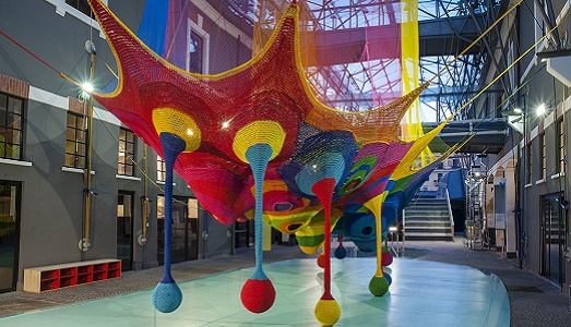 Sopra: Enel Contemporanea 2013, Toshiko Horiuchi MacAdam. Harmonic Motion / Rete dei draghi, MACRO