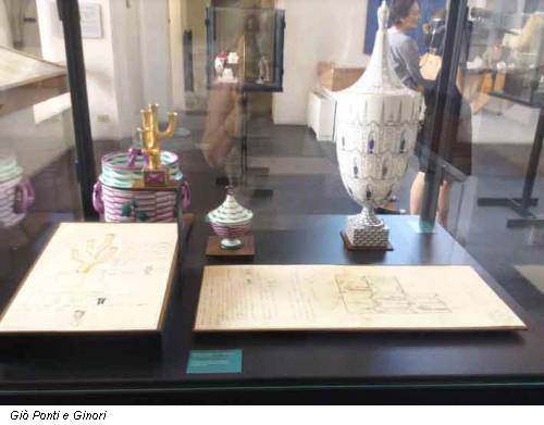 La mostra in corso al Museo Marino Marini di Firenze a cura di Livia Frescobaldi Malechini, Olivia Rucellai e Alberto Salvadori, aperta fino al 21 luglio, propone una trentina di queste lettere – per lo più destinate a Tazzini – in associazione agli oggetti che in esse vengono descritti e che sono stati prodotti. Ponti infatti correda i suoi scritti con schizzi, disegni, annotazioni, indicazioni di fabbricazione e quant’altro possa essere utile per far eseguire il lavoro al meglio, le lettere dunque offrono un focus sull’operato dell’architetto-design ma anche sul modo di lavorare nel contesto industriale e manifatturiero della Richard Ginori. Sappiamo, infatti, che Ponti non amasse lavorare in solitudine e che quindi fosse sua abitudine coinvolgere i grafici, gli esecutori. Ponti si occupa in prima persona di ogni aspetto della produzione tanto che ha anche realizzato dei nuovi colori come per esempio un blu in due diverse tonalità detto appunto “blu Ponti”.