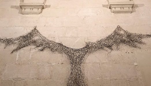 Dialoghi perfettamente riusciti tra opere e spazio sono anche quelli instaurati da Massimo Ruiu, Sabino de Nichilo e Francesca Romana Pinzari, gli unici non fotografi, le cui ricerche di estrazione concettuale si evolvono prevalentemente in pratiche scultoree e installative. Instancabile sostenitore del valore filosofico dell’arte, Ruiu inscena nella sala del refettorio una riflessione ad ampio raggio sugli opposti dentro-fuori, vita-morte, pieno-vuoto, luce-buio. Agendo con le consuete chiocciole, divenute firma iconica, trovate al di fuori del convento e perciò testimonianze del luogo, metafora naturale del genius loci, l’artista disegna su una delle pareti un infinito che cessa di essere tale nel momento in cui le chiocciole si spostano. Ma quando le stesse distruggeranno un foglio su cui è disegnato un teschio, porranno metaforicamente fine alla fine, ristabilendo il concetto di infinito. Al mondo naturale attinge anche Pinzari, che utilizza i capelli come segno grafico e gesto scultoreo. Intrecciati in una rete per creare angeliche figure o morbidamente distesi in volti melanconici, i capelli sono i segni mutevoli dell’esistenza intesa soprattutto come resistenza. Pulsioni organiche – ricreate e non proposte – attraversano anche le sculture in terracotta invetriata di De Nichilo. Dislocate tra i resti scultorei del convento, le sue strutture cardiomorfe sembrano animare le lapidee testimonianze, rievocando le vicende umane trascorse in quel luogo e parafrasando le emozioni vissute e le storie non scritte. (Carmelo Cipriani)