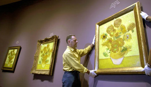 – I Girasoli di Van Gogh stanno appassendo. Uno studio ai raggi x ha evidenziato il decadimento del giallo che, tra qualche anno, potrebbe virare al marrone. Che ne sarà delle t-shirt, delle tazze e delle borse?