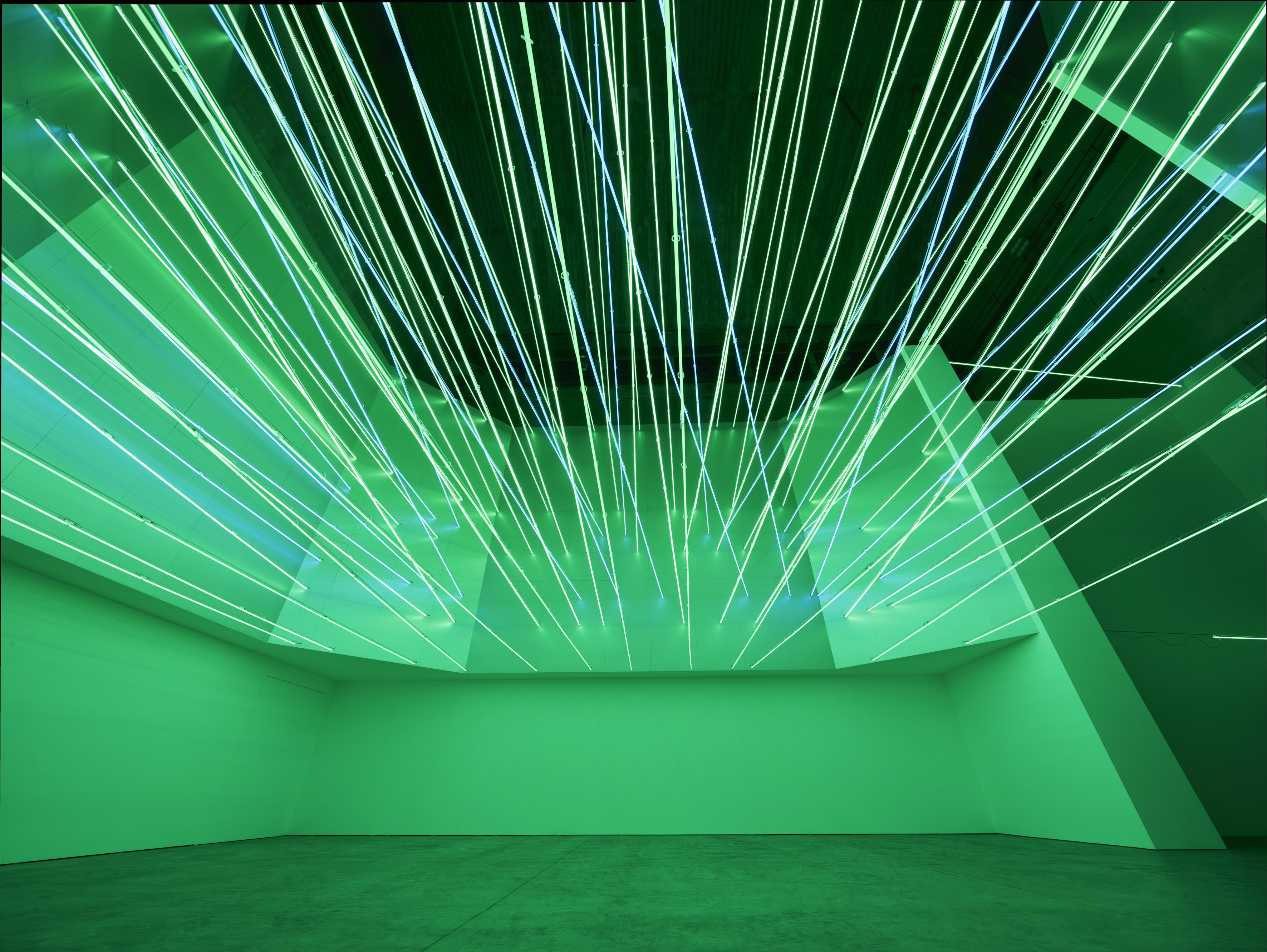 In home: Lucio Fontana, Struttura al neon per la IX Triennale di Milano, 1951/2017, veduta dell’installazione in Pirelli HangarBicocca, Milano, 2017. Courtesy Pirelli HangarBicocca, Milano. ©Fondazione Lucio Fontana Foto: Agostino Osio