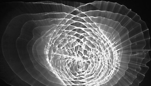 Per il Pio Monte della Misericordia – antica istituzione fondata nel 1602 da nobili napoletani come opera di carità che, tra l’altro, ospita il capolavoro di Caravaggio – l’artista ha prodotto una performance all’interno della cappella, con la violoncellista Manuela Albano che, attraverso il suono del suo strumento, ha fatto vibrare dei cavi di acciaio che sospendevano a mezz’aria un disco trasparente, contenente un velo d’acqua di pochi millimetri, attraversato verticalmente da fasci luminosi. Questa particolare struttura, chiamata col nome di Idrofono e brevettata dall’artista, permette di proiettare su una superficie concava quelli che diventeranno poi dei suggestivi effetti luminosi, una sorta di mare artificiale dai colori brillanti che si muove di pari passo con il flusso sonoro e musicale. Le immagini che ne scaturiscono, le Idrofanie, vengono accuratamente fotografate, diventando, per la natura caotica dell’acqua, uniche nel loro genere. Poi, negli spazi di Villa di Donato, queste particolari forme luminose, che rappresentano l’immagine tangibile di un suono, frammento unico di una materia effimera come le note musicali, sono state esposte in una lunga serie, all’interno di light box o stampate su superfici d’alluminio.