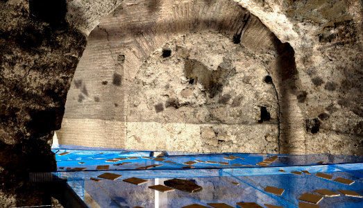 Un luogo dal fascino millenario che si apre all’arte contemporanea, grazie a Underneath the arches, progetto a cura di Chiara Pirozzi e Alessandra Troncone che hanno unito valorizzazione del territorio e ricerca artistica internazionale. Dopo l’artista messicano Arturo Hernández Alcázar, è la volta dell’artista turca Hera Büyüktaşçıyan che ridisegna architettonicamente lo spazio interno dell’acquedotto con l’installazione From there we came out and saw the stars, una sorta di porticato costituito dai materiali più semplici, dal colore blu intenso che intende rimandare alla forza di un elemento salvifico come l’acqua. Grazie alla particolare morfologia del sito è inoltre possibile guardare l’opera attraverso visioni differenti, sia dal basso che dall’alto, provocando un inconsueto senso di immersione ed emersione. Così, quello che sembra un flusso d’acqua diventa inaspettatamente un cielo, proiettato nell’intricato sistema di archi dell‘acquedotto grazie a un sistema di luci appositamente studiato e che permette all’opera di diventare una vera e propria costellazione.