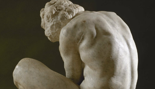 L’Adolescente, datato intorno al 1530, è uno dei pochi lavori del celeberrimo scultore custoditi all’estero. L’opera arrivò in Russia per il volere della zarina Caterina II, dopo averla acquistata dal collezionista inglese John Lyde Browne alla fine del XVIII secolo. Dalla collezione privata reale, la scultura è passata all’Accademia di Belle Arti di San Pietroburgo fino a essere collocata, nel 1851, nella sede dell’attuale Ermitage. Un ragazzo accovacciato a terra spinto da una forza che non lo lascia libero di muoversi nello spazio. La scelta di un marmo poco pregiato è singolare da parte di Michelangelo e i colpi che lasciano incompiuta l’opera conducono a libere riflessioni e interpretazioni. Una scultura affascinante e piena di pathos.