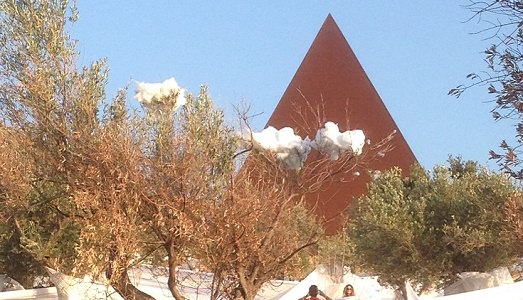 Anche oggi il Rito della Luce si è compiuto in Sicilia, ai piedi della Piramide 38° Parallelo di Mauro Staccioli, parte del parco della Fiumara d’Arte di Castel di Tusa, opera di Antonio Presti.