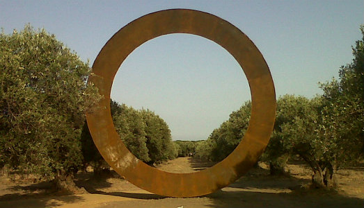 Le sue prime sculture-interventi s’ incuneavano nella routine del vissuto antropologico urbano, nello spazio-tempo delle nostre città e suscitavano nuove attese. Il rapporto con l’ambiente -pareva suggerici Staccioli con la sua opera- sia esso urbano o naturale, implica la nozione di responsabilità, intesa come partecipazione attiva e creativa alla edificazione della polis; l’opera è il segno del risveglio, della critica, della coscienza vigile che cresce in un rapporto di effettiva reciprocità. Così pure quando s’interviene “in natura”; e lui operava con le forme semplici e pure della geometria stabilendo con madre terra un rapporto armonico, direi quasi “classico”: come sempre si verifica nella storia, quando tra l’uomo e la natura si stabilisce una proficua alleanza. Nei dintorni di Volterra, viaggiando in auto nella magnificenza del paesaggio, ci si imbatte nei sui segni che dialogano con l’ambiente. Quando vidi la prima volta queste opere collocate nella splendida natura toscana provai la stessa emozione che affiorò in me di fronte alla Rotonda del Palladio. L’Anello di San Martino ne è un esempio, un lascito prezioso. Un segno che dialoga perfettamente con l’orizzonte, con il nord, il sud, l’est e l’ovest che annullano la loro convenzionalità connettendosi con la potenza armonizzatrice dell’arte. (Ernesto Jannini)