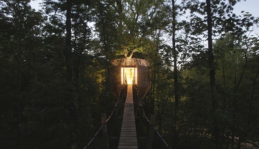 Nel bosco di Château de Raray poco a nord di Parigi, nel 2017 Atelier LAVIT, ha realizzato l’”ORIGIN tree house Hotel”. La struttura, completamente in legno, è ispirata alla forma di un nido d’uccello: una cabina di 23 metri quadrati, su base ottagonale, realizzata a una decina di metri metri d’altezza, che si sviluppa attorno al tronco di una quercia centenaria e può ospitare un paio di persone. Vi si accede attraverso un ponte sospeso tra gli alberi, che esce a sua volta da un’altra costruzione sospesa ospitante una spa e una sala relax. All’interno della casa-nido si trovano un letto, un piccolo salotto e persino una doccia. Grandi finestre e un terrazzino sul tetto – con tanto di sedie e tavolino – permettono un’insolita immersione tra le chiome degli alberi. Non è mai troppo tardi per la magia della casa sull’albero, ma non portate troppi amici…