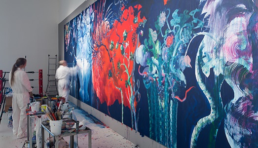 Gli spettatori possono assistere gratuitamente all’evoluzione del match: qualcuno interrompe, altri stanno in silenzio a osservare l’eroe compiere quello per cui è chiamato a fare. Si sorride a vedere come ogni tanto l’artista alzi la voce o discuta con una delle due assistenti, che a turno affiancano il maestro nell’impresa. Si entra e si esce, ma la sensazione è comunque quella di disturbare un parto, anche se è la parte più interessante e nascosta di tutta questa operazione. Aver partecipato al “dietro le quinte” è come essere un po’ all’interno della foresta che man mano prende forma sulle pareti, e che per gli spettatori astanti risulterà probabilmente meno oscura e meno fitta. Fino al 29 novembre. (Giulia Alonzo)