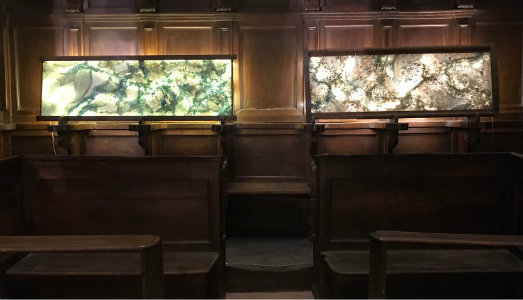 Queste suggestioni provenienti da un universo interiore, in cui gli accadimenti del passato vengono rielaborati nella concretezza della materia, entrano in dialogo con lo spazio barocco della chiesa caratterizzato dal coro ligneo e dall’armadio di sacrestia, realizzati entrambi nel 1628 da Giuseppe di Francesco Bendini di Montepulciano, oltre alla Deposizione della Croce, affresco attribuito al Perugino e datato 1517. Ma la riflessione è anche collettiva, «Il tema delle radici visto come movimento continuo di popolazioni alla ricerca di stabilità o inteso come ricerca individuale della propria storia, ma soprattutto per scavare sotto lo strato di superficialità creato dal vorticare impetuoso della terra, ci propone non solo una tematica attuale, ma soprattutto, con l’aiuto della luce notturna ci permette di ritrovare e rivivere quell’emozione ormai dimenticata tipica dell’infanzia, in cui magia e realtà non hanno confine», ha spiegato l’artista.