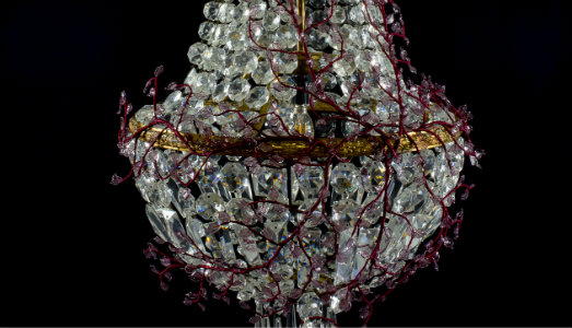 Da anni Andrea Penzo e Cristina Fiore si dedicano alla rilettura dell’arte vetraria in chiave contemporanea, anche attraverso la loro associazione Cantiere Corpo Luogo e, in questa occasione, hanno presentato un antico lampadario di cristallo, un ready-made al quale è stato applicato un fregio vegetale, come una sorta di firma o elemento di frattura, che rallenta e addolcisce la forte carica simbolica dell’oggetto. L’inserto è stato realizzato dagli artisti con la tecnica muranese dell’insetato, oggi quasi scomparsa perché troppo laboriosa per i ritmi commerciali dell’isola. «Impero è un’installazione aerea dove l’oggetto ready-made vede la propria funzione posta in secondo piano rispetto al lavoro paziente e manuale degli artisti, che ne impreziosiscono la forma. L’opera diventa così una stratificazione di tradizioni che offrono lo spunto per un ragionamento sul presente», ha commentato Alice Bortolazzo, curatrice dell’esposizione.