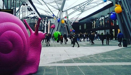 Nessuno le ha viste avvicinarsi, nonostante i colori accesi e la proverbiale lentezza. Sono comparse all’improvviso, seguendo un piano d’invasione calcolato al minimo dettaglio e a nulla è valsa l’ardita difesa tentata dai venditori di calzini e dai suggeritori di numeri al lotto. Ormai, l’esercito delle cinquantasette chiocciole ha superato i bancarielli delle tre campanelle e ha preso pieno possesso della Stazione Garibaldi, capolinea della Linea 1 della metropolitana di Napoli. Ma gli utenti della fermata progettata da Dominique Perrault non si fanno prendere dal panico, anzi, familiarizzano con le chiocciole che si arrampicano sui fasci di tubi di acciaio e sulle strutture di teflon, mentre le prime immagini vengono diffuse sui social network.