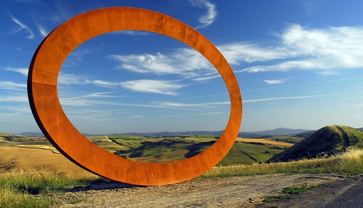 Il motivo? Forse non tutti sanno che Volterra, dal 2009, e proprio dalla mostra “Luoghi dell’esperienza”, ha lasciato al suo territorio di nascita gran parte delle opere ambientali installate per l’occasione, segnando il paesaggio di sculture geometriche minimaliste, di dimensioni ciclopiche, con le quali Staccioli (1935), aveva “riletto” la zona campestre, rituffandosi nei ricordi, e portando un nuovo punto di vista grazie alla possibilità per gli spettatori di vedere attraverso scorci e cornici che cambiano e si rinnovano ogni giorno, in un gioco continuo e mutevole tra opera, paesaggio appunto, e luce. Creando, non in ultimo, una vera e propria attrazione turistica. Storica, e anche sociale. E il comune, e non solo, ringraziano.