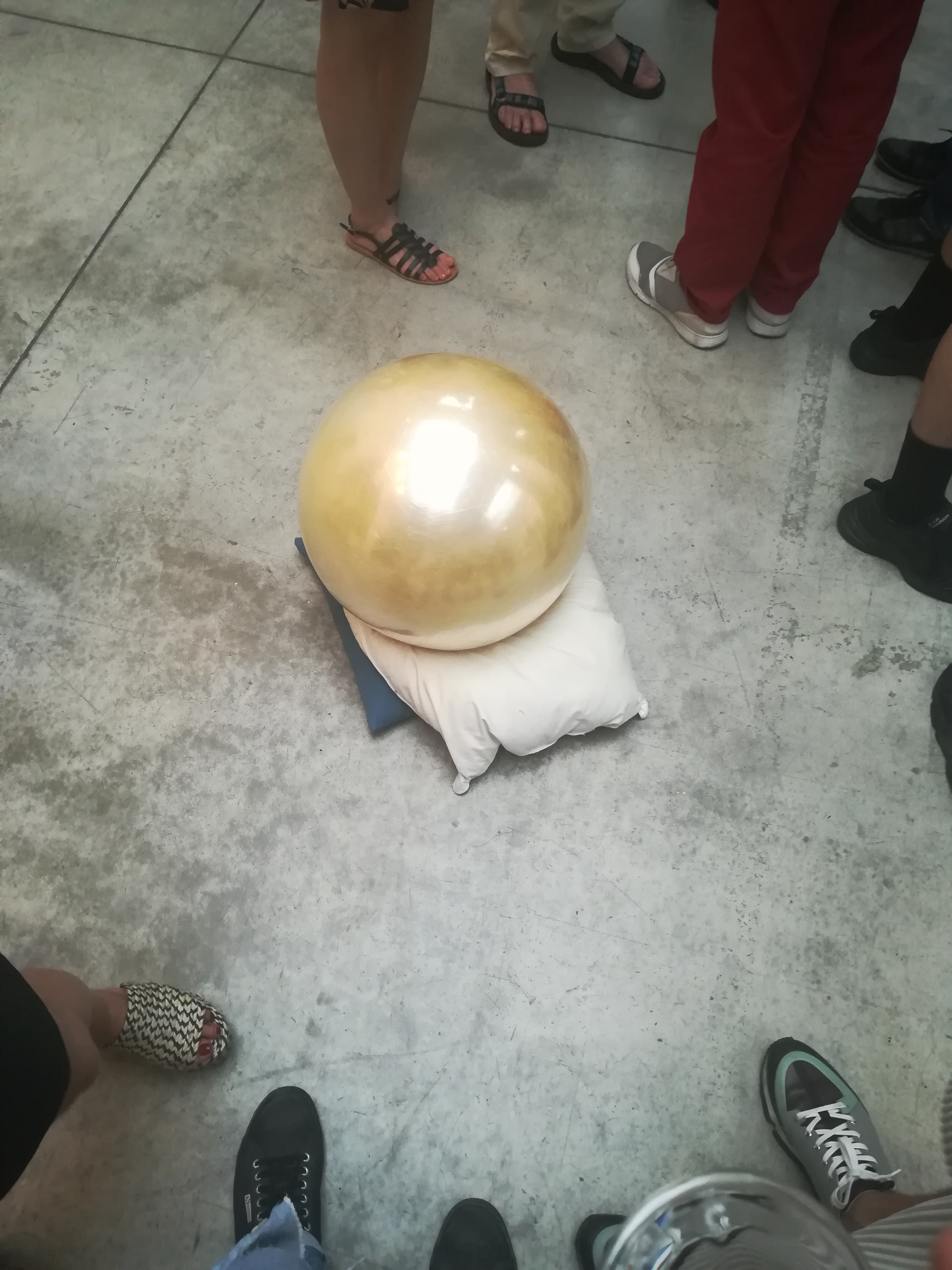E così, in galleria, sfilano gli oggetti ibridi di Matteo Pizzolante, che mixano tessuto e metallo; la grande “perla” di Luisa Turuani, oggetto prezioso dall’anima misteriosa e “fake” (foto sopra); la storia della Sicilia contemporanea e del concetto di casa raccontata da Alessio Barchitta, attraverso la costruzione di affascinanti palloni-sculture con ceramiche rucuperate (foto in home page); le performance dedicate ai campi energetici e alle connessioni umane di Bea Viinamaki insieme ai pezzi di Flavia Albu, Federico Cantale, Jimmi Milani, Antonio Miucci, Giacomo Montanelli, Giovanni Riggio e Michela Zanini.