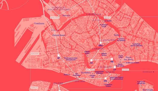 In questa prima fase Venice Galleries View propone a visitatori e collezionisti un percorso alla scoperta del microcosmo delle nove gallerie fondatrici guardando a un ampio arco temporale: prevede, oltre agli eventi di questi giorni, inaugurazioni di mostre nelle stesse date per tutte le gallerie aderenti e la pubblicazione quadrimestrale – a novembre, gennaio, maggio e settembre – di una piccola guida sulle mostre in corso nei nove spazi. Il pieghevole, in forma di mappa, include informazioni sulle mostre, la traccia di un tragitto per le calli della città che tocca le gallerie coinvolte e è corredato da un breve testo introduttivo scritto da diversi personaggi del mondo della cultura, affidato, nell’edizione fresca di stampa, a Tiziano Scarpa.