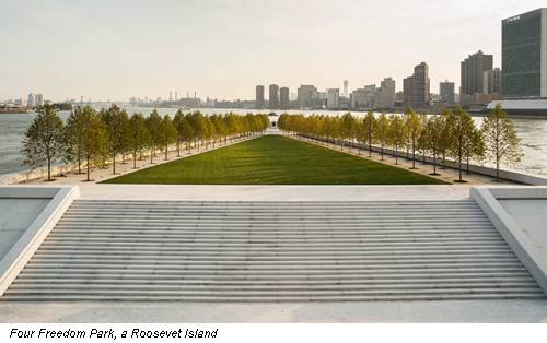 In tutto questo non bisogna dimenticare il nome del parco: Four Freedom, definito dalla stampa americana come un lavoro di progettazione magistrale, da dove guardare l’isoletta nel suo XIX secolo, con il piccolo ospedale che sembra un romantico rudere perfettamente incorniciato da un paesaggio simmetrico a cui fanno da contrappunto i panorami del Queens e Manhattan, con la lucentezza cerulea del palazzo delle Nazioni Unite, misteriosamente vicino.