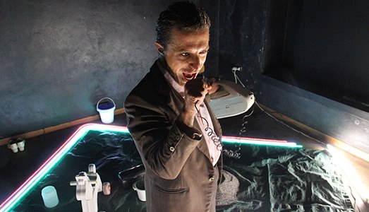 Non chiedetevi di scene e scenografie: all’Elfo, come sempre, regna la scarsità degli elementi e dei trucchi: tutto è affidato alla recitazione di Dario Muratore, in grado di trasformarsi da pipistrello a drago, nel compito non facile di rendere teatro le tre prose “maledette” in un solo show vertiginoso.