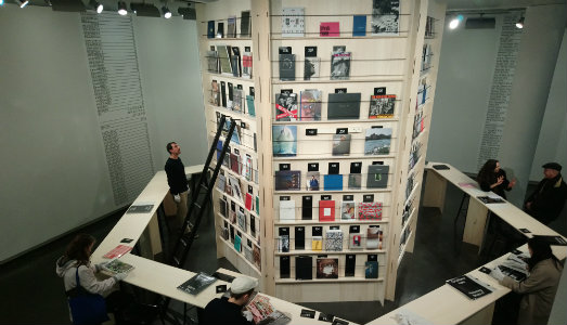 Come esporre i libri? Consultabili liberamente e mediati da professionisti della fotografia che consigliano e discutono con i lettori per orientarli e far scoprire loro novità e autori della foto contemporanea. Tra i libri, Gulu Real Art Studio della fotoreporter italiana Martina Bacigalupo, costituito da una serie di ritratti senza volto, in cui le teste sono rimpiazzate da spazi bianchi. A prima vista espressione concettuale, si tratta, in realtà, di scarti fotografici ritrovati in un vecchio negozio della città di Gulu, in Uganda, dovuti a quella parte di clientela che non può pagare tutte e 4 le foto restituite dall’unico scatto. L’autrice mette in luce problematiche sociali ed economiche drammatiche grazie anche a diverse interviste fatte alla clientela dello studio fotografico. Dal lato voyeurismo troviamo The Park 1971-73 di Kōhei Yoshiyuki, una serie di foto in bianco e nero realizzate di notte con flash infrarossi nei parchi di Tokyo. Qui vengono ritratte coppie in atti sessuali, osservate a loro volta dai peeper, o più comunemente guardoni, che arrivano fino al punto di toccare gli amanti. Tra i libri anche quelli di Sophie Calle, Benedetta Pomini, Ai Weiwei, Daido Moriyama e dell’iraniana Amak Mahmoodian con Shenasnameh.