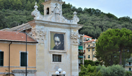 Sulla facciata della Chiesa di San Francesco, a Noli, c’è una grande immagine di una donna, un volto che ci racconta dell’eterno incontro di storie e culture che provengono da luoghi distanti. È il ritratto, preso da un frame video, di Rasha Miech, donna fuggita dalla guerra in Siria, arrivata dal Libano in Italia grazie al corridoio umanitario organizzato dalla Comunità di Sant’Egidio, che Adrian Paci ha apposto sull’edificio sacro risalente al XIII Secolo. Una sostituzione esplicita, sfacciata, carica di una forte valenza tanto simbolica quanto tangibile, architettonica. E questa simbolica sovrapposizione si ripete anche all’interno, nella navata, dove un grande schermo proietta il video integrale, in cui Paci ha colto la storia di Rasha Miech, ascoltando le sue parole e i suoi silenzi, osservando i gesti e le espressioni del volto, mentre dice: «Ho trentacinque anni e sono di origine palestinese».