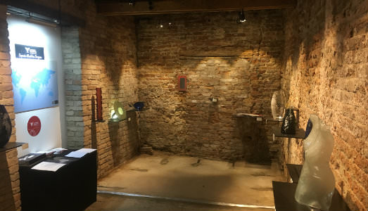 Un piccolo antro nel campiello che spezza Fondamenta Vetrai proprio di fronte al Ponte di Mezzo, il baricentro del flusso turistico che si snoda tra il dedalo di rive e canali dell’arcipelago muranese. Un comune magazzino, chiamato anche caneva in veneziano, viene reso scrigno di fasci di luce che danno spessore a delicatissimi e raffinati oggetti in vetro incisi.