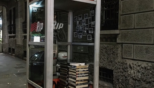 Questo lo pseudonimo con cui l’artista ha scelto di presentare il suo progetto RIP (acronimo di “Riposa in pace”), all’ex-cabina SIP (o Telecom) di Viale Brianza a Milano.